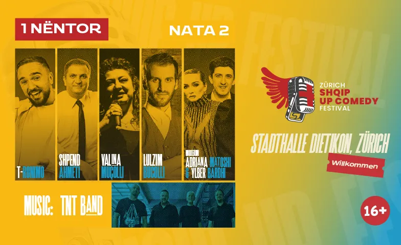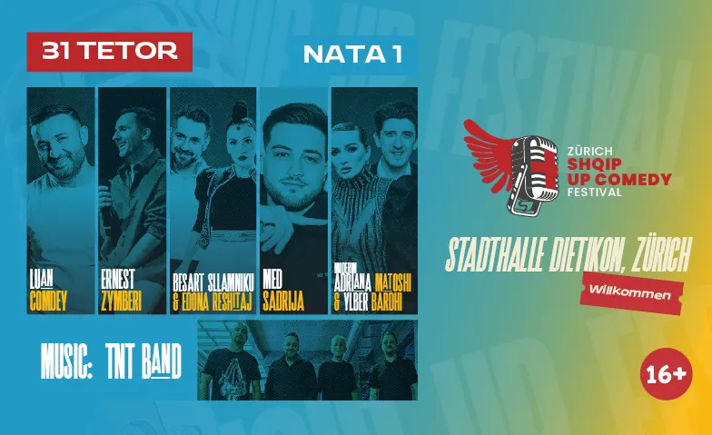 Auf der Bühne des Shqip Up Festival Comedy in Zürich werden einige der beliebtesten Namen des albanischen Humors auftreten. Mit Energie, Spontaneität und endlosem Lachen sorgen sie für einen unvergesslichen Abend, bei dem das Publikum aktiv Teil des Entertainments wird.